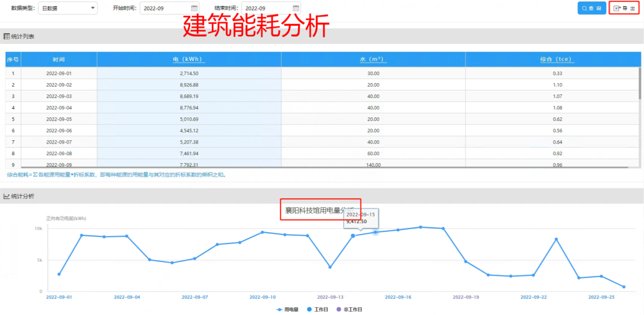 实现各建筑、区域、支路、部门不同能源自定义时间段能耗的统计和分类分项能耗统计。解决建筑日月年时间段内多能源消耗统计和折标数据集中展示的问题,方便对不同时间各个分项能耗进行同比和环比分析。