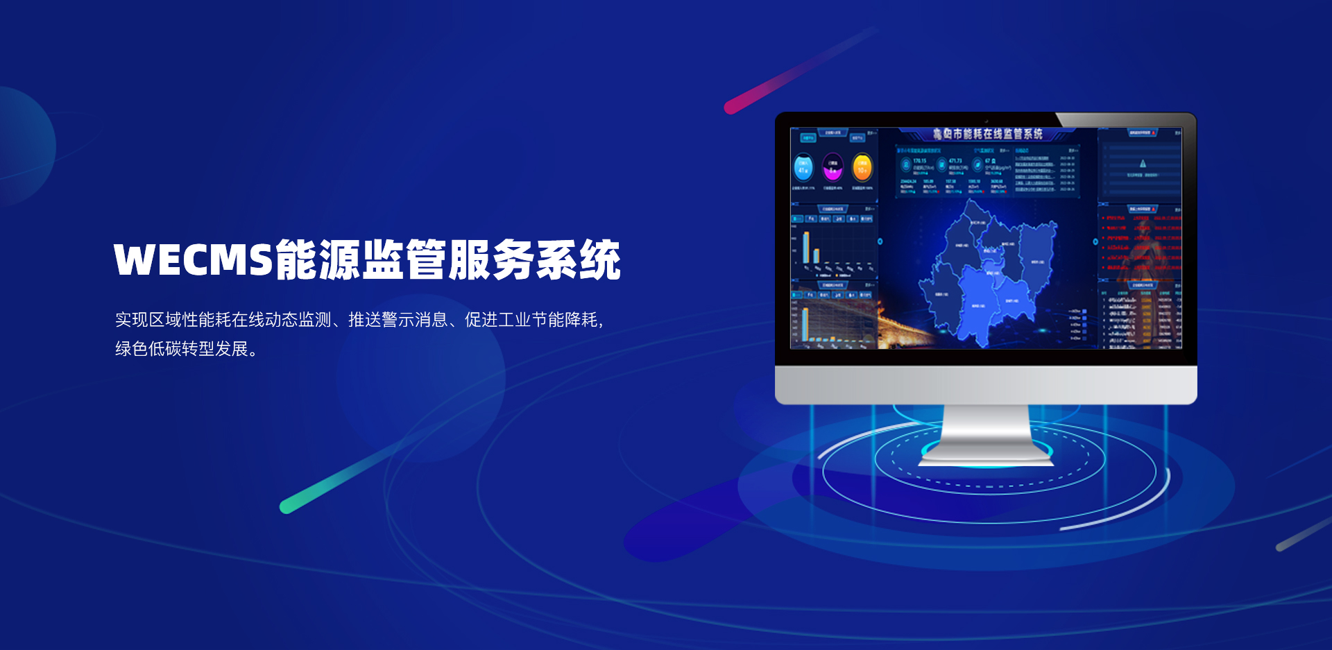 能源监管服务系统充分利用现代信息化、网络化、大数据分析技术,通过建立政府级能源数据管理中心,形成集数据汇总、数据存储为一体的节能减排数据库,主要从耗能与碳排放两方面对各行业重点用能单位的能源消耗量、能效水平进行实时监测、在线监管,建立科学的能源管理考核指标体系,为政府部门科学配置能源资源,统筹规划节能管理工作提供重要科学依据,实现区域性能耗在线动态监测;利用大数据分析挖掘技术和在线分析诊断技术,及时发现能耗异常现象并推送警示消息,促进工业节能降耗,绿色低碳转型发展。